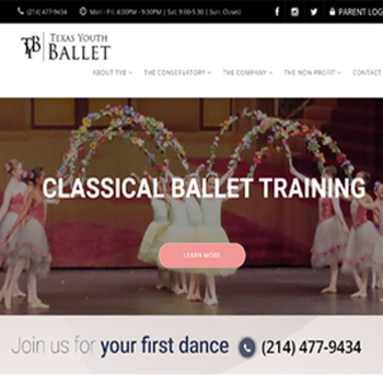 We have worked with Texas Youth Ballet for a very long time and were thrilled to redesign their website to meet current trends and their clients. They are now enjoying the highest enrollment numbers since pre-Pandemic! They called the new site a "Game Changer."